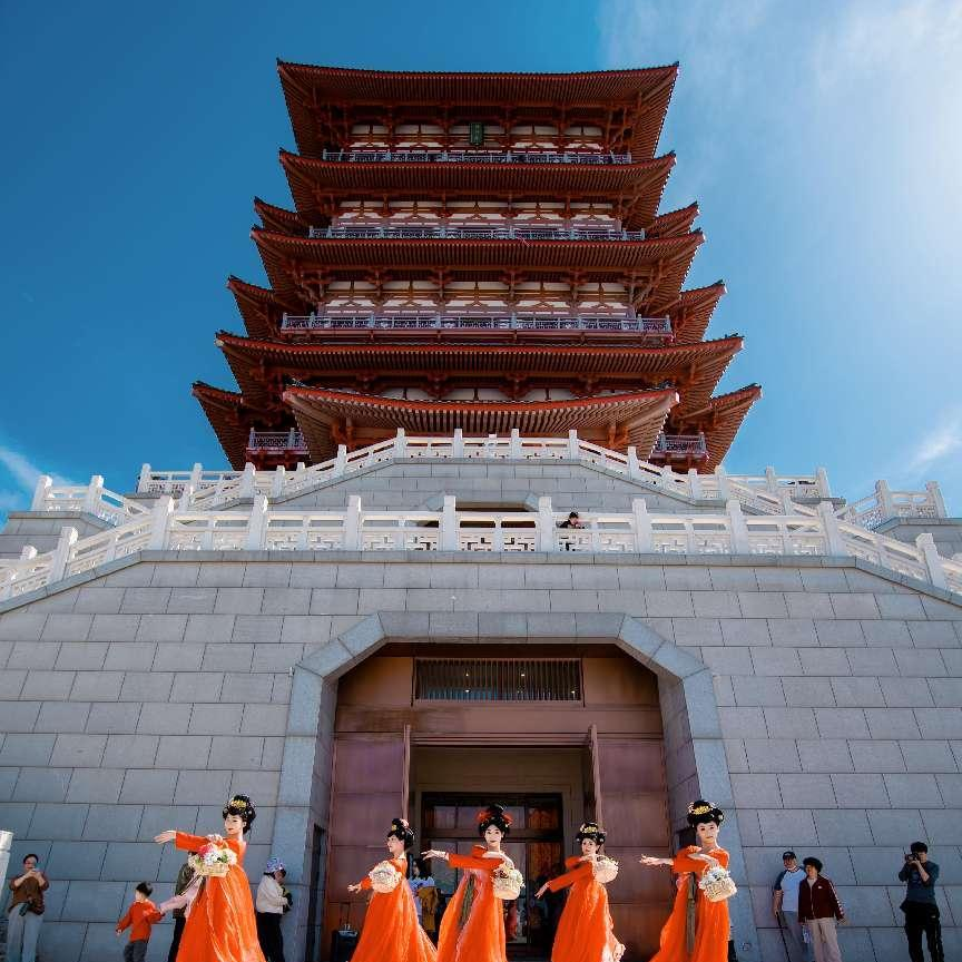 花神赋舞 千年风雅,入景成诗自4月4日起,每日10时与15时,花神翩然降临阁楼北门。霓裳轻旋,乐声婉转,《花神赋》以舞叙花事,演绎牡丹千年风华。节目中“簪花郎”一颦一笑皆成画,演出落幕时,游客争相与之合影,定格这场穿越时空的邂逅。