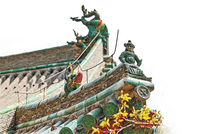 初祖庵大殿屋脊上的人物、动物雕刻精美,栩栩如生。
