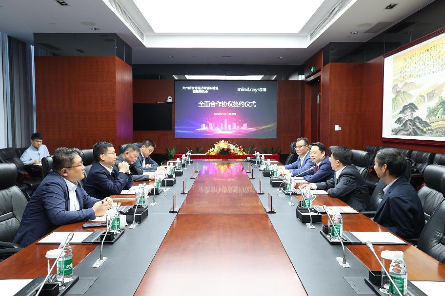河南省人民政府副秘书长,郑州航空港区管委会主任田海涛,深圳迈瑞生物医疗电子股份有限公司党委书记林斗明亲临见证,共启深度合作新篇章。