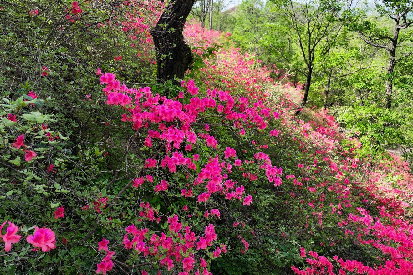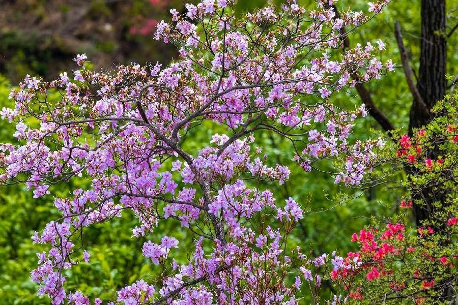 4月20日前后是杜鹃花最佳观赏期,四棵树乡平沟村云溪谷杜鹃岭的500余亩山野,已然化作一片梦幻的花之海洋。