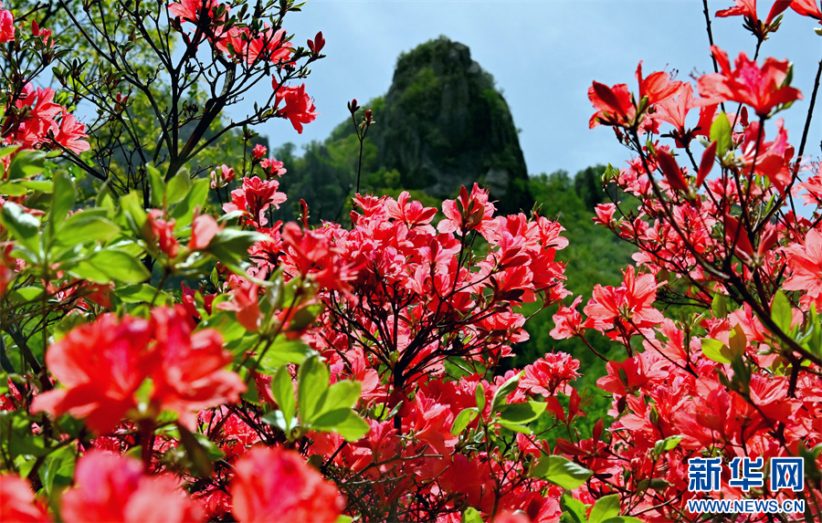 4月23日,河南省汝阳县西泰山盛开的杜鹃花。