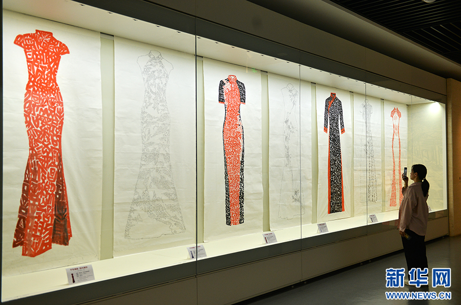 据介绍,本次展览作为2025中国(安阳)国际汉字大会的重要组成部分,充分展示了甲骨文字活化新样貌。展览以《甲骨文三字经》中的甲骨文字为字符,以青铜器、汉服、旗袍、戏曲脸谱等为载体,进行融合创作。作品分为《甲骨青铜》《甲骨汉服》《甲骨旗袍》《甲骨戏曲脸谱》《甲骨器韵》五个系列主题,吸引众多游客前来观赏。新华网发(叶剑宇 范超 摄)