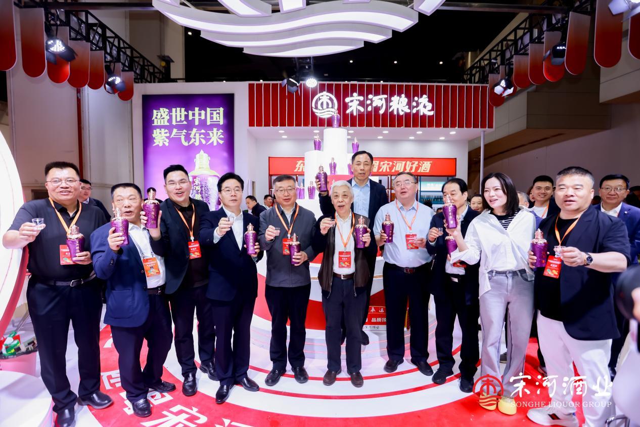 在开幕式巡馆环节,中国酒类流通协会副会长兼秘书长邢春雷、中国酒类流通协会主席团副主席刘员、郑州糖酒会组委会名誉主任熊玉亮、河南省糖酒食品流通协会会长彭希安、河南省餐饮与住宿行业协会副会长蒋辉、河南省酒业协会常务副会长兼秘书长赵书民等资深行业专家领导,组团莅临中国名酒宋河粮液的双展位,尝老酒,看新品,对宋河的焕然一新予以高度肯定,对宋河粮液新品巅峰之作——紫气东来赞不绝口。