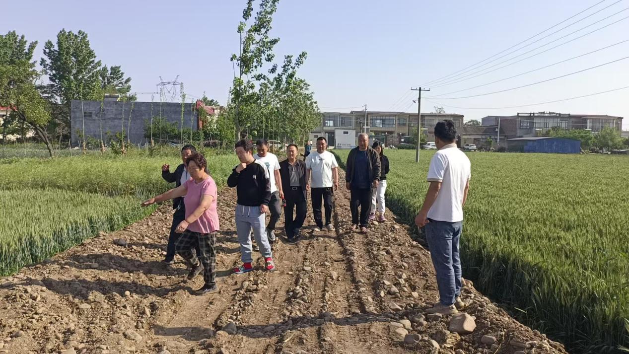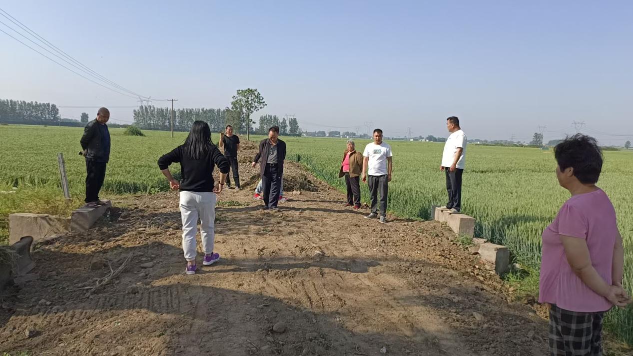 4月28日,郏县王集乡枣庄村的村干部在村党支部书记王晓华的带领下,对村内群众急切需要解决的高标准农田修路问题,进行实地测量,面对面解决群众的生产需求。