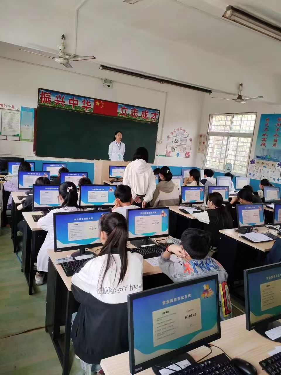 此次监测内容为六年级的学业质量及体质健康。学业质量测试学科为语文、数学、英语、科学,体质健康测试项目包含体重指数、肺活量、坐位体前屈、1分钟跳绳、1分钟仰卧起坐、视力测试等6项。测试对象为全县学籍系统中随机抽取的16个学校461名学生。整个监测过程按照教育主导、有关部门参与的工作机制进行,细化了测试点各类人员岗位职责,教育、财政、卫健、公安、工信、电力等部门统筹协调,凝聚合力,测试期间电力供应充足、网络畅通、测试点周边安全,测试现场程序严谨,操作规范,井然有序。