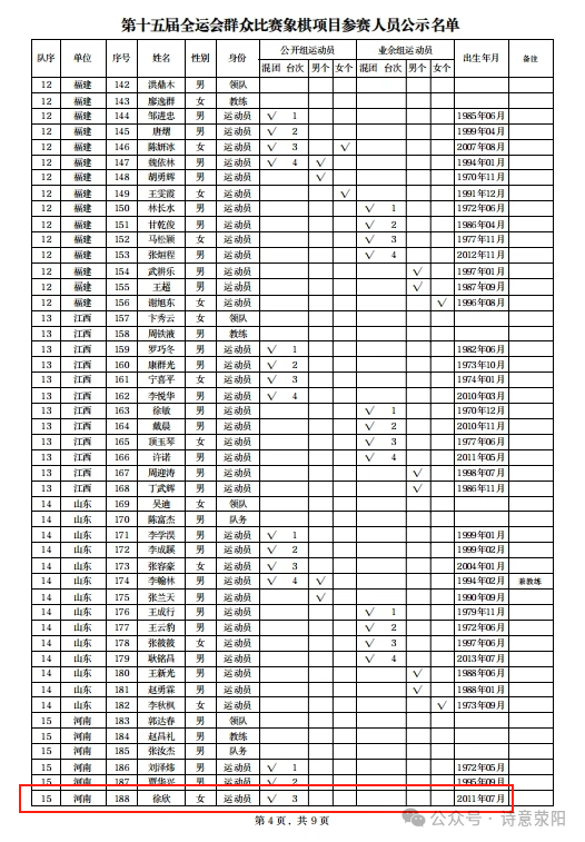 河南队此次参赛15人,其中宋炫毅、郑柯睿(女)、徐欣(女)、张紫轩(女)4名棋手来自荥阳。这也是荥阳市首次打破历史记录,彰显我市象棋人才培养方面走在全省前列。