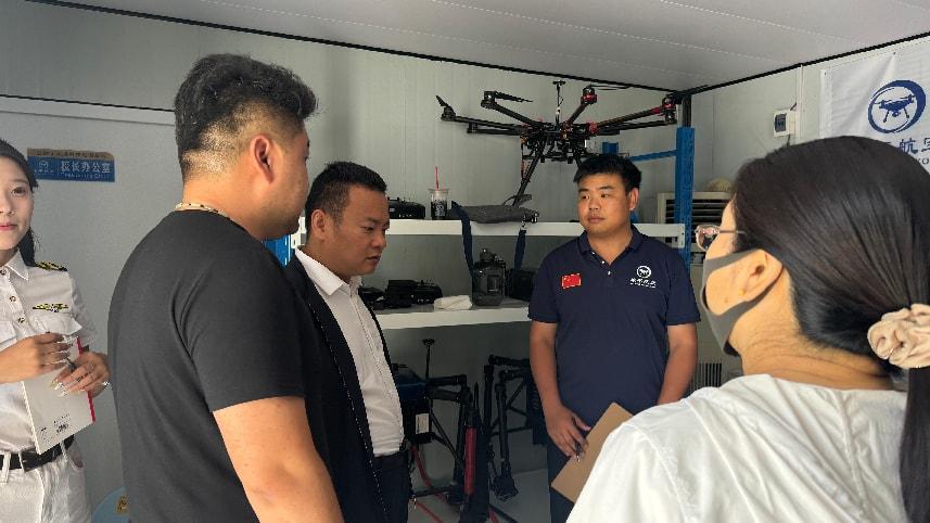 在参观过程中,登封市飞行器航拍协会的会长、秘书长详细介绍了协会的发展历程、组织架构以及业务范围。登封市飞行器航拍协会自2023年9月8日成立以来,始终致力于推广飞行器技术,培养专业人才,在助力城市建设、文化宣传、应急救援等方面发挥了积极作用。目前,协会不仅拥有专业教练团队,还拥有航拍、应急救援、农业植保、吊运等能力。