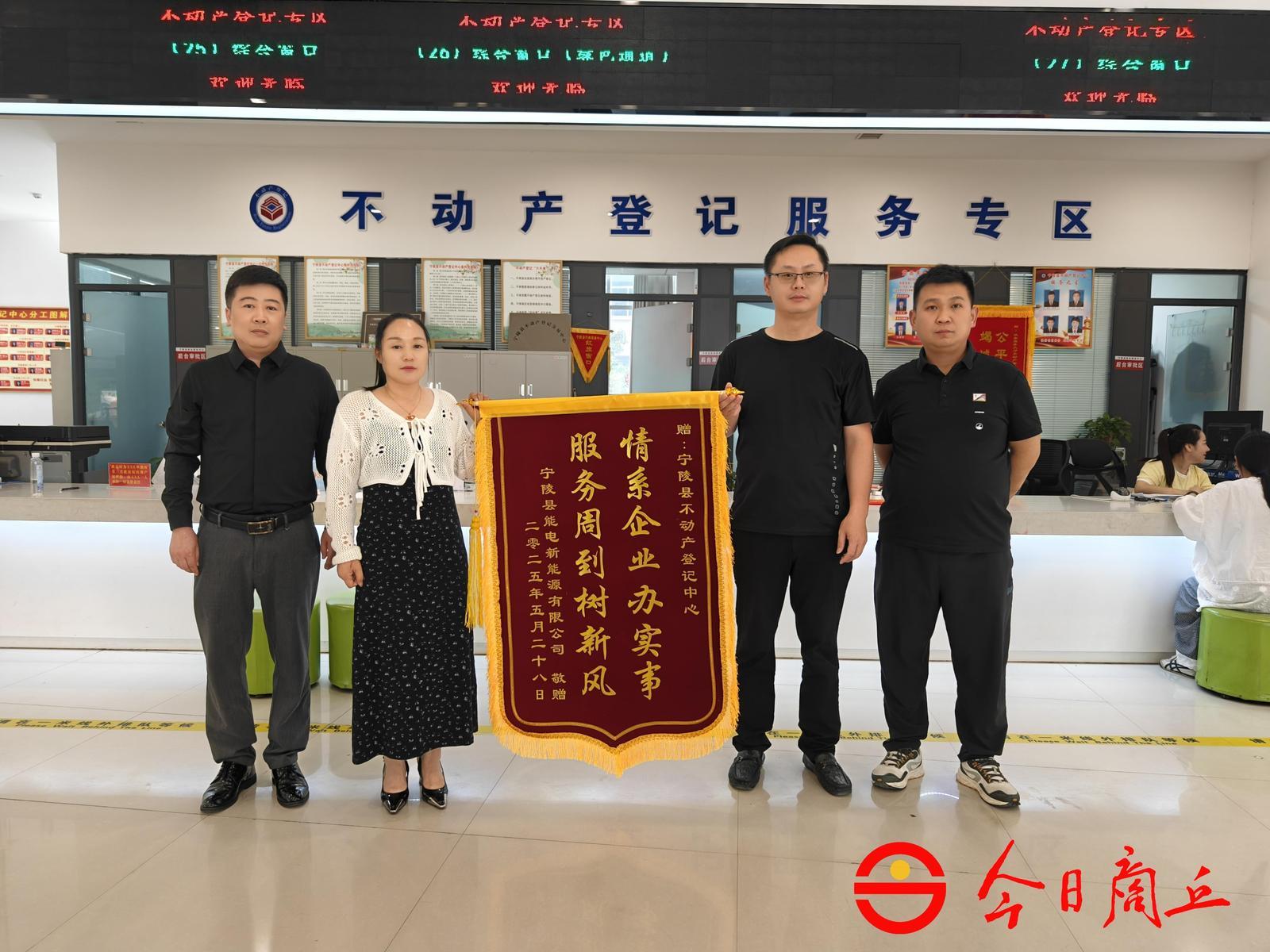 5月28日,宁陵县能电新能源有限公司负责人魏尧来到不动产登记服务窗口,将一面绣着“服务周到树新风情系企业办实事”的锦旗交到工作人员手中。这是宁陵县不动产登记服务领域深化“放管服”改革的最新注脚——企业六宗土地登记需求当日提交、当日领证,刷新县域产权登记效能纪录。