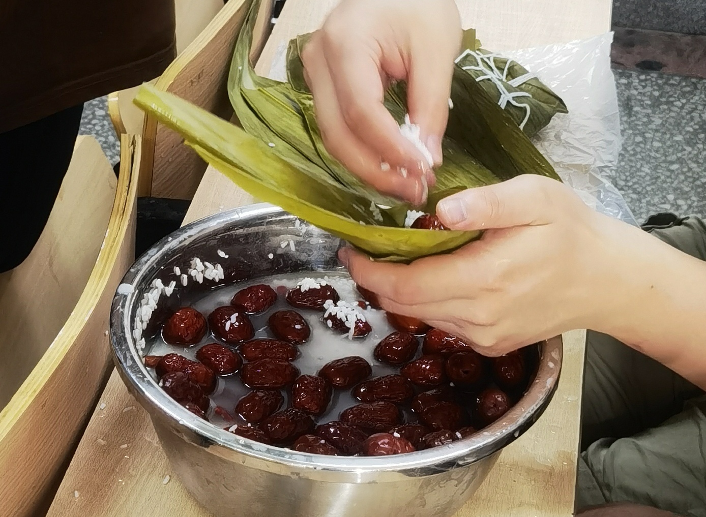 毕业生齐动手,完成了又一份“毕业作品”,纷纷在粽绳系上写有“科技报国”“孝亲反哺”的卡片寄语,将个人理想编织进家国经纬。所包的粽子里,每一片粽叶包裹着老师的谆谆教诲,每一粒糯蕴含着同窗的温暖陪伴,这份“毕业粽”里珍藏着最珍贵的青春密码。