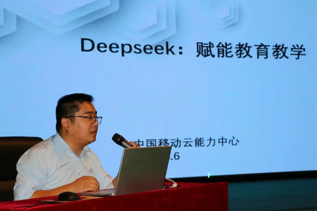 为积极顺应教育智能化发展趋势,提升教职工的教学水平与创新能力,少林小龙武校于6月6日上午,特别邀请中国移动云能力解决方案专家王俊杰,在多功能大厅为全体教职工带来了一场以“DeepSeek赋能教育教学”为主题的精彩讲座。此次活动旨在让学校教职工深入了解并掌握DeepSeek在教育领域的应用,推进学校教育教学的数字化与智能化进程。