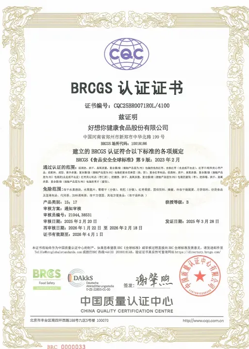2024年,好想你通过数字化转型实现全链路效能提升。最新财报显示,公司2025年一季度归母净利润同比激增216.08%,销售毛利率提升至33.97%,降本增效成果显著。今年3月,好想你获得了BRCGS全球食品安全认证,标志着企业质量管理体系已达国际顶尖水准。