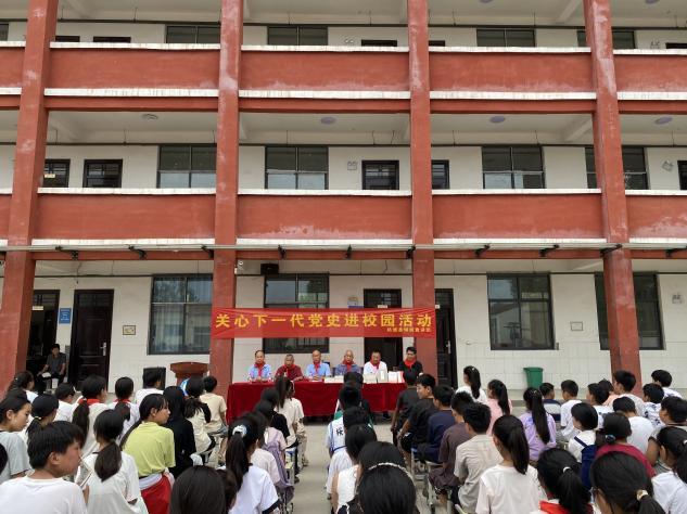 6月18日下午,嘹亮的歌曲《没有共产党就没有新中国》在柘城县老王集镇余心白小学校园回响。当天,柘城县银龄宣讲团的老同志们不顾炎炎夏日来到该校,以“党史润童心,英雄励成长"为主题,通过沉浸式党史课,讲革命英雄故事和200余名师生喜迎中国共产党成立104周年。