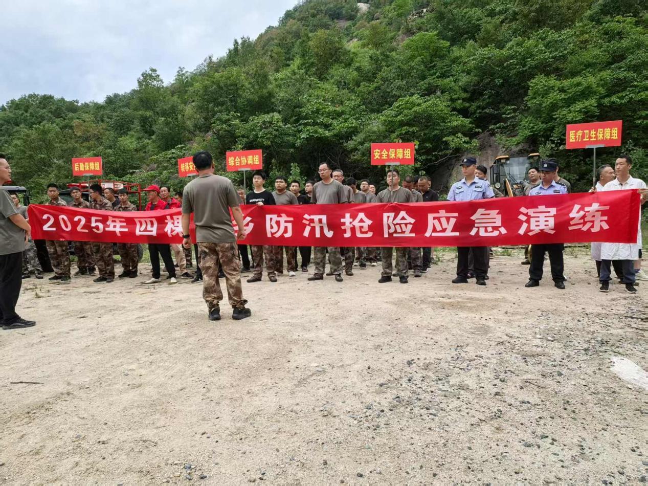 6月26日,鲁山县四棵树乡张家沟水库区域警报骤响。一场模拟应对特大暴雨灾害的防汛应急演练在此展开。