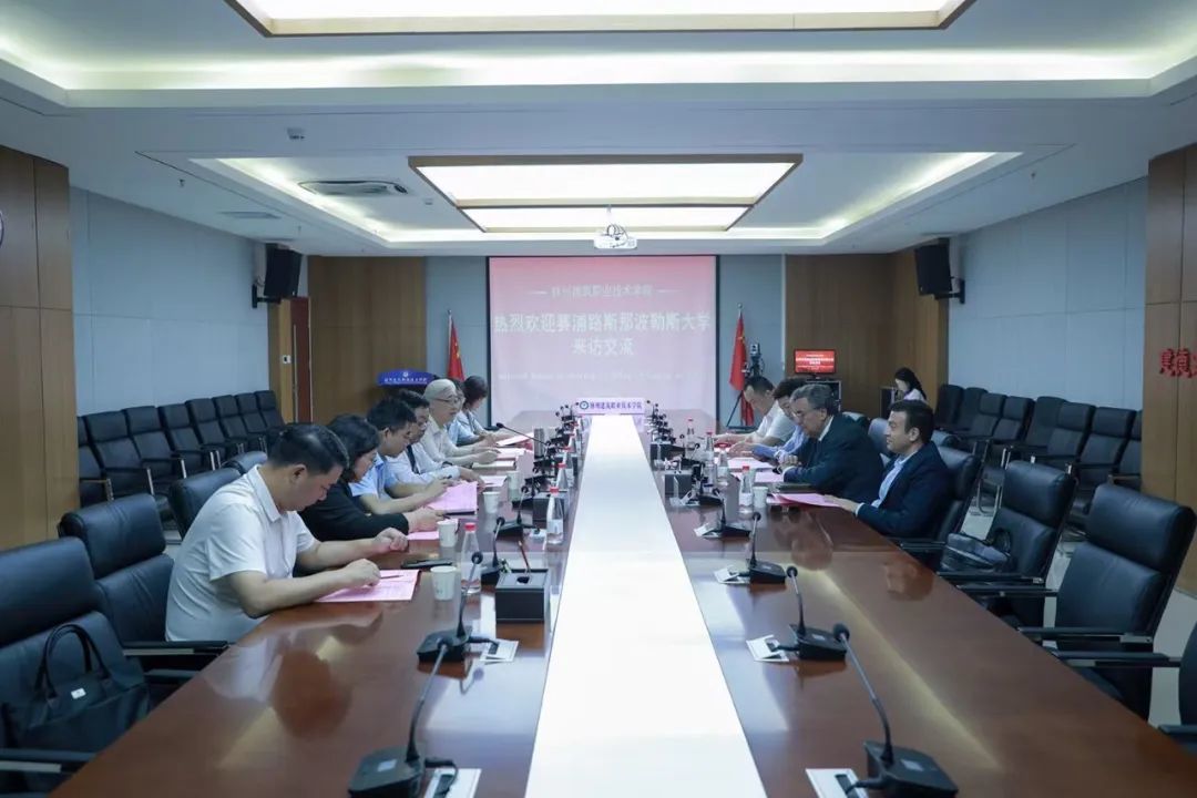 林州建院校长张清华对那波勒斯大学校长潘泰利斯·斯克利亚斯先生一行的到来表示热烈欢迎,他在致辞中介绍:“林州建院目前正处于‘升格本科层次职业教育’与‘创建国家级高水平高职学校’的关键期,此次合作是学校深化国际化办学的重要一步。”他强调,开放合作是职业教育高质量发展的必由之路,双方将通过联合开发课程标准、共建“建筑可持续发展实训中心”等具体项目,提升办学水平、拓宽学生发展通道,同时接收对方师生来校开展实践教学。