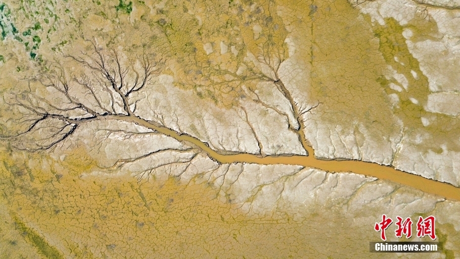 2025年7月13日,随着黄河小浪底水利枢纽调水调沙的作用,在河南省洛阳市孟津区境内的黄河下游两岸河床上,由河水冲刷和泥滩裂变形成了大面积的印迹图案,这些纹路明暗相间的图案,如遒劲的大树、飘逸的流云,形态各异,惟妙惟肖,恰似一幅大自然挥就的黄河“水粉沙画”。