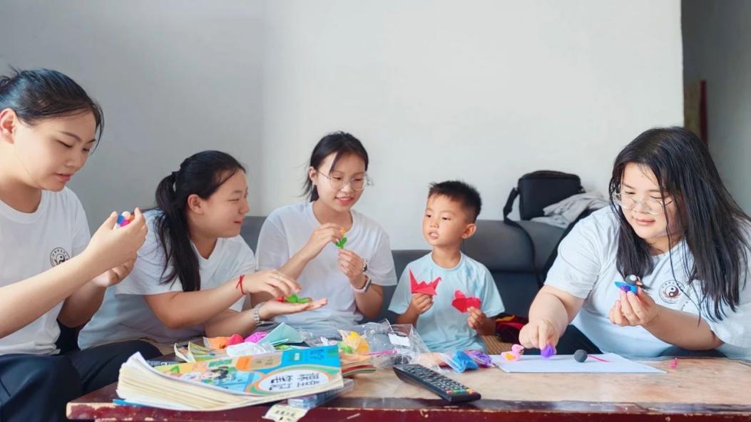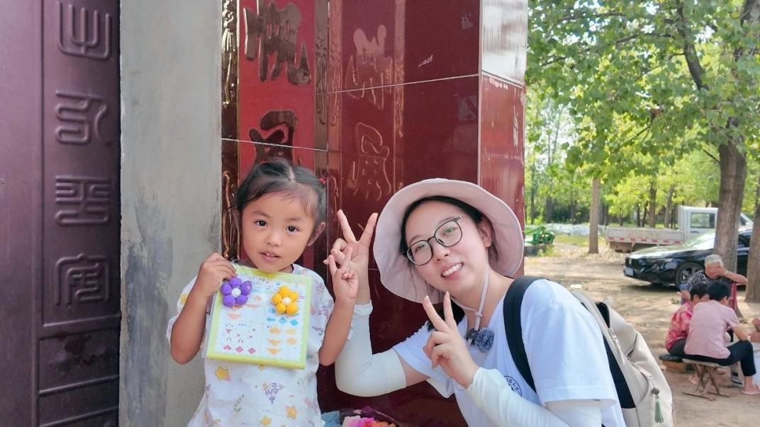 入户家访传关爱,文化育苗润心田。少年儿童是祖国的未来。付楼村孩子们的教育状况牵动着队员们的心。社会实践团队分组入户走访,通过互动游戏、促膝长谈等方式细致了解当地中小学生家庭情况、心理健康状态及日常学习需求,并赠送学习用品、辅导课业。家访作为一种重要的教育方式,不仅能够为当地中小学生播撒爱与温暖的种子,更使团队成员深刻理解教师职业的责任与使命。此外,社会实践团队还在付楼村党群服务中心开展了“文化育苗”活动:介绍大学校园环境,激发孩子们的学习热情;分享励志求学故事,传递榜样力量;讲述焦裕禄先进事迹,弘扬奋斗精神;组织中药香囊制作,体验传统文化。寓教于乐的互动环节,为孩子们的健康成长注入精神动力,增强情感温度。活动尾声,小朋友们送来亲手制作的小礼物及写有“我爱你们”的图画,纯真质朴的心意让队员们深受触动。