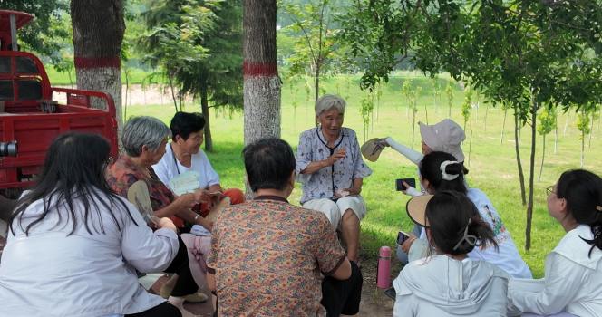 焦桐树下与魏善民老人现场交流