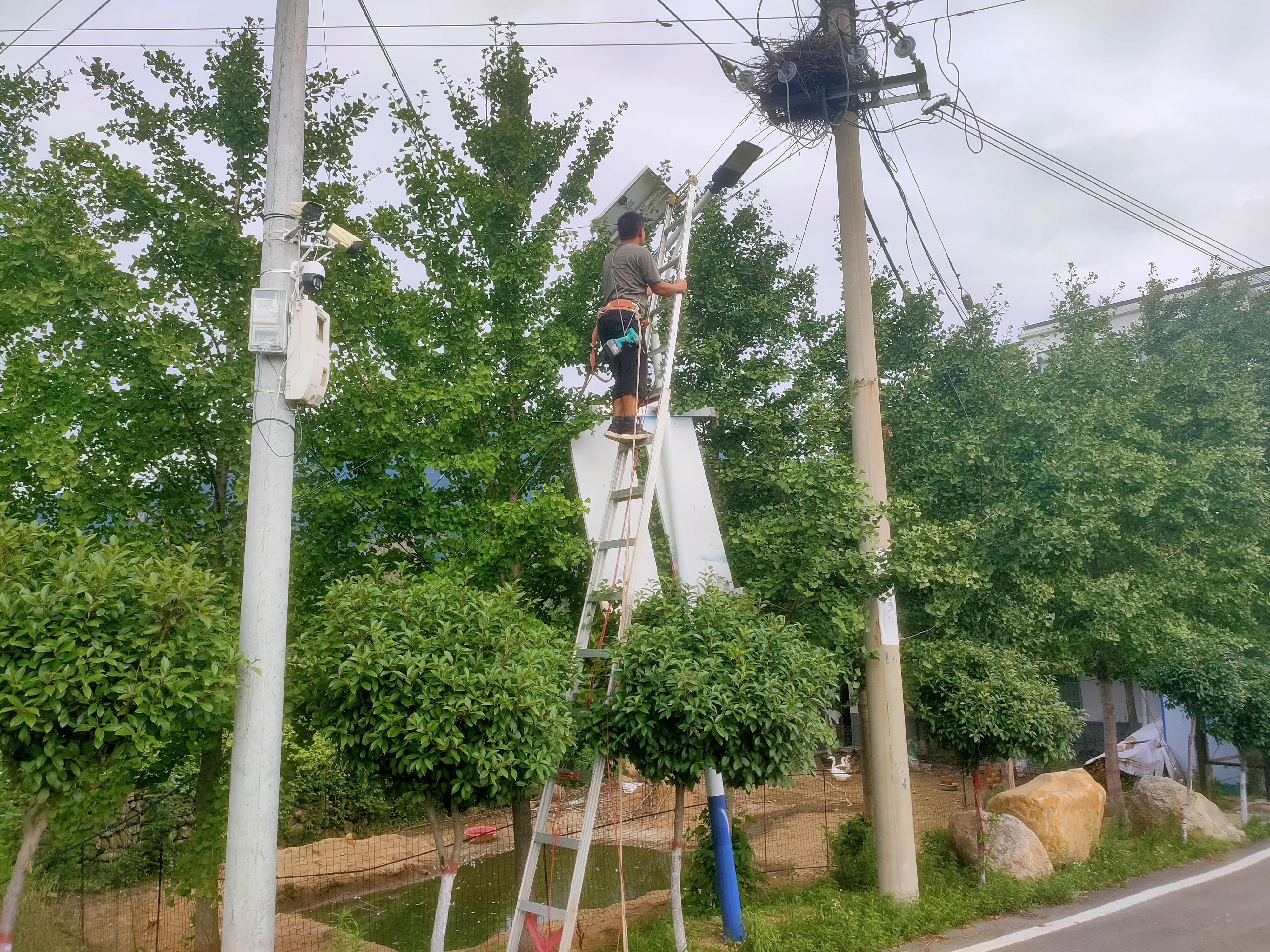 工作人员在维修路灯。(鲁山县委宣传部供图)