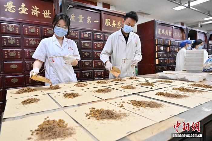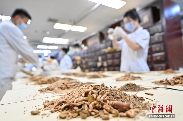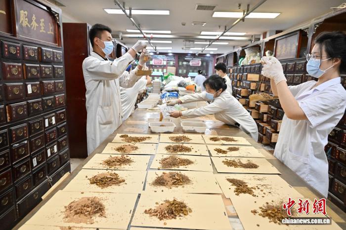 7月20日,入伏首日,河南商丘众多家长带孩子前往中医机构, 通过贴敷“三伏贴”和施行“三伏灸”等中医疗法,以达到“冬病夏治”的效果。图为中医师正在调配“冬病夏治”所需中药。 李恒 摄