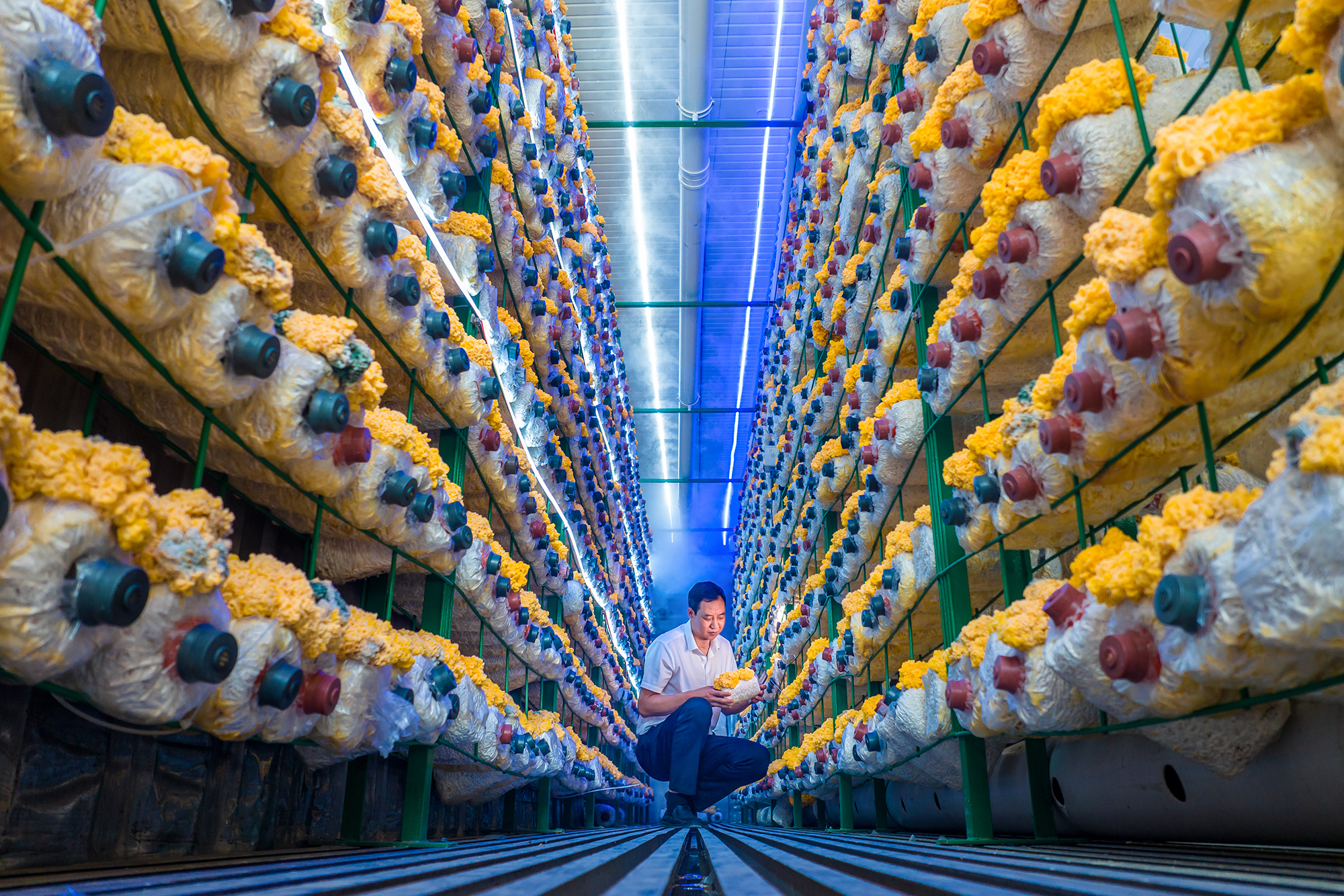 合庄村生产菌菇有多年历史,2023年,该村率先引进“智慧菌舱”技术生产金耳菇,在河南省属首例。依托智能化管理系统,金耳菇可以一年四季生长。与传统生产方式相比,生产效率提升近30%。目前,合庄村“智慧菌舱”建成10个,金耳菇一个月可生产一茬,一个方舱能产800公斤左右、年纯利润可达八万至十万元,另有15个方舱正在建设中。合庄村将金耳加工成金耳羹、金耳冻粉,产品经万福源嗨果儿商贸公司等大型连锁商超销往全国各地。合庄村还成立鲁山县和合至美智慧农业科技有限公司,定期聘请科技专家到基地指导生产,护航金耳菇种植产业持续健康发展。金耳菌种植基地加上村民们种植的数万袋香菇,构成合庄村的特色主导产业,不仅提升了村集体经济收入,还有效带动大批村民务工增收。