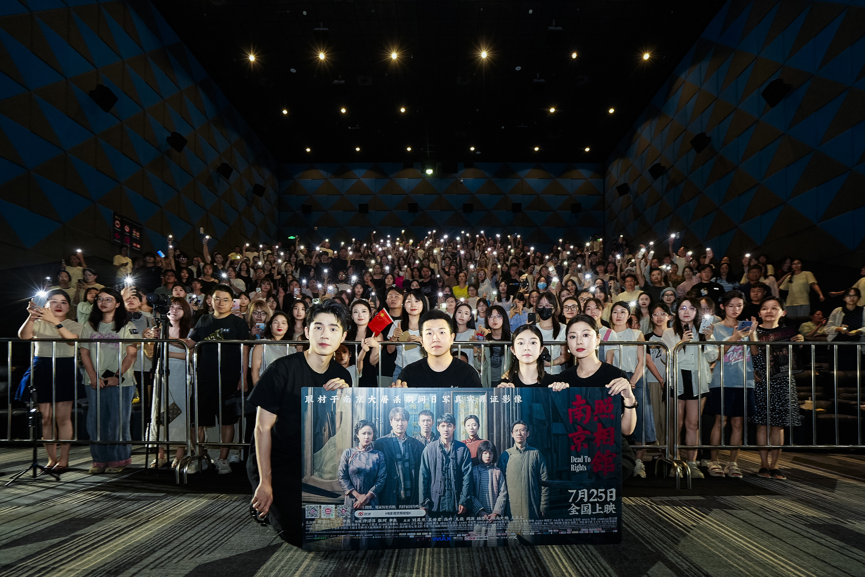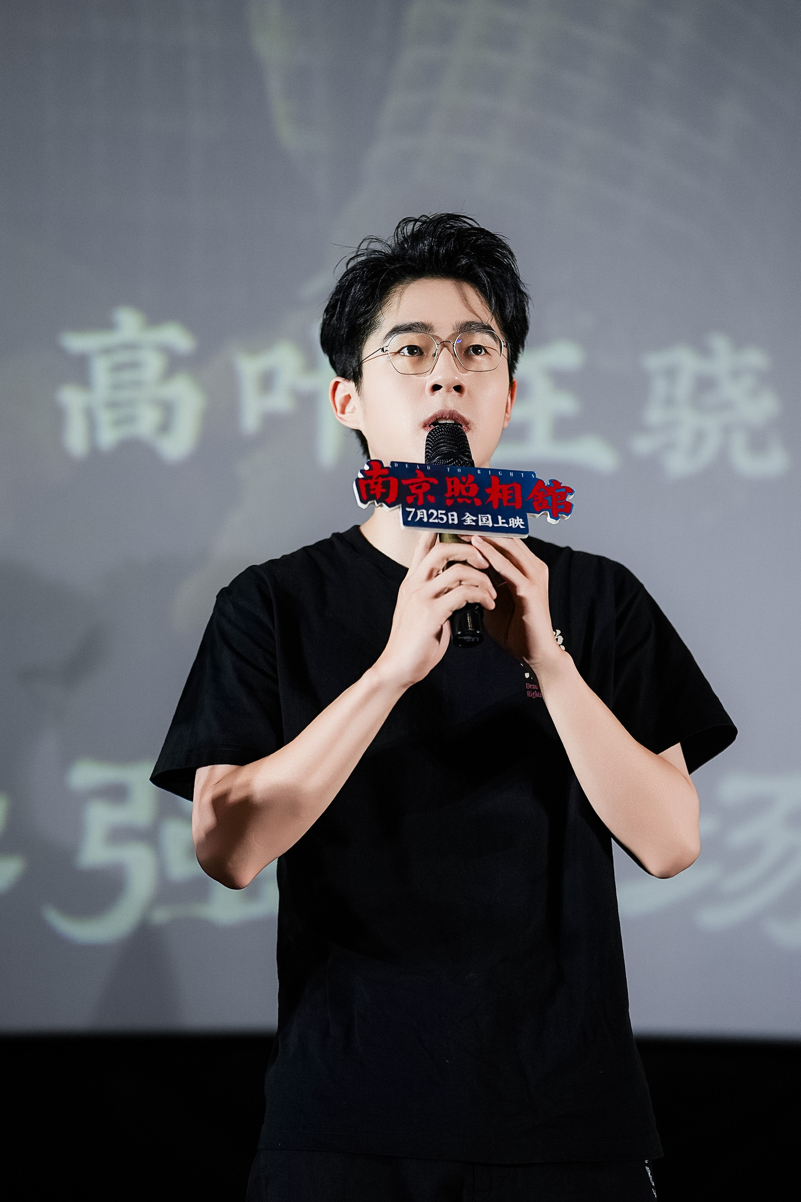 《南京照相馆》电影取材于南京大屠杀期间日军真实罪证影像,聚焦于一家名为“吉祥照相馆”的避难所,讲述了馆内的老百姓起初只想在大屠杀中保命,却因帮日军摄影师冲洗底片,意外冲印出证明日军屠城的罪证照片,面对日军暴行、同胞遭遇和民族存亡,他们最终决定将这些底片留存的故事。在路演现场,一位观众家中多位长辈都曾上过战场,因此特地邀请爷爷奶奶来观影,奶奶落泪不止,爷爷则用河南话分享在电影里看到了日军侵华的野蛮行为,希望大家要牢记历史,还特意称赞“刘昊然同志演得很形象”,刘昊然透露自己父亲曾经“当过兵,上过战场”。