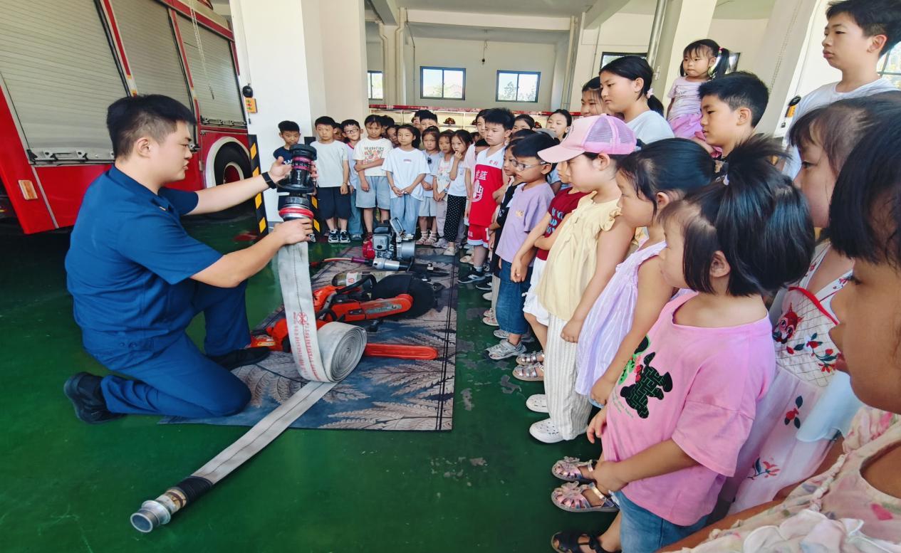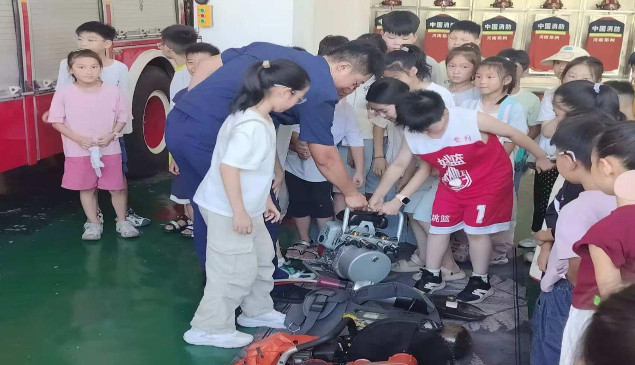 孩子们围着消防车,摸摸这、问问那,消防员叔叔耐心解答每一个问题,让大家对这些“钢铁英雄”有了更深的了解。