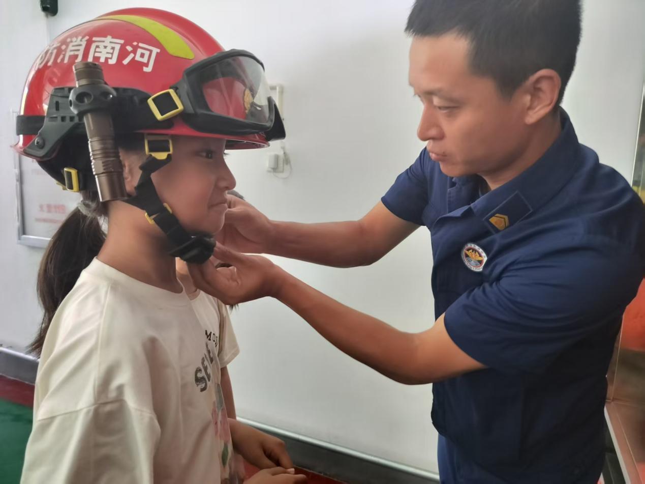 消防员叔叔邀请孩子们试穿防护服,没想到刚穿上没多久,大家就热得满脸通红、汗如雨下。“原来消防员叔叔这么辛苦!”孩子们纷纷感叹。