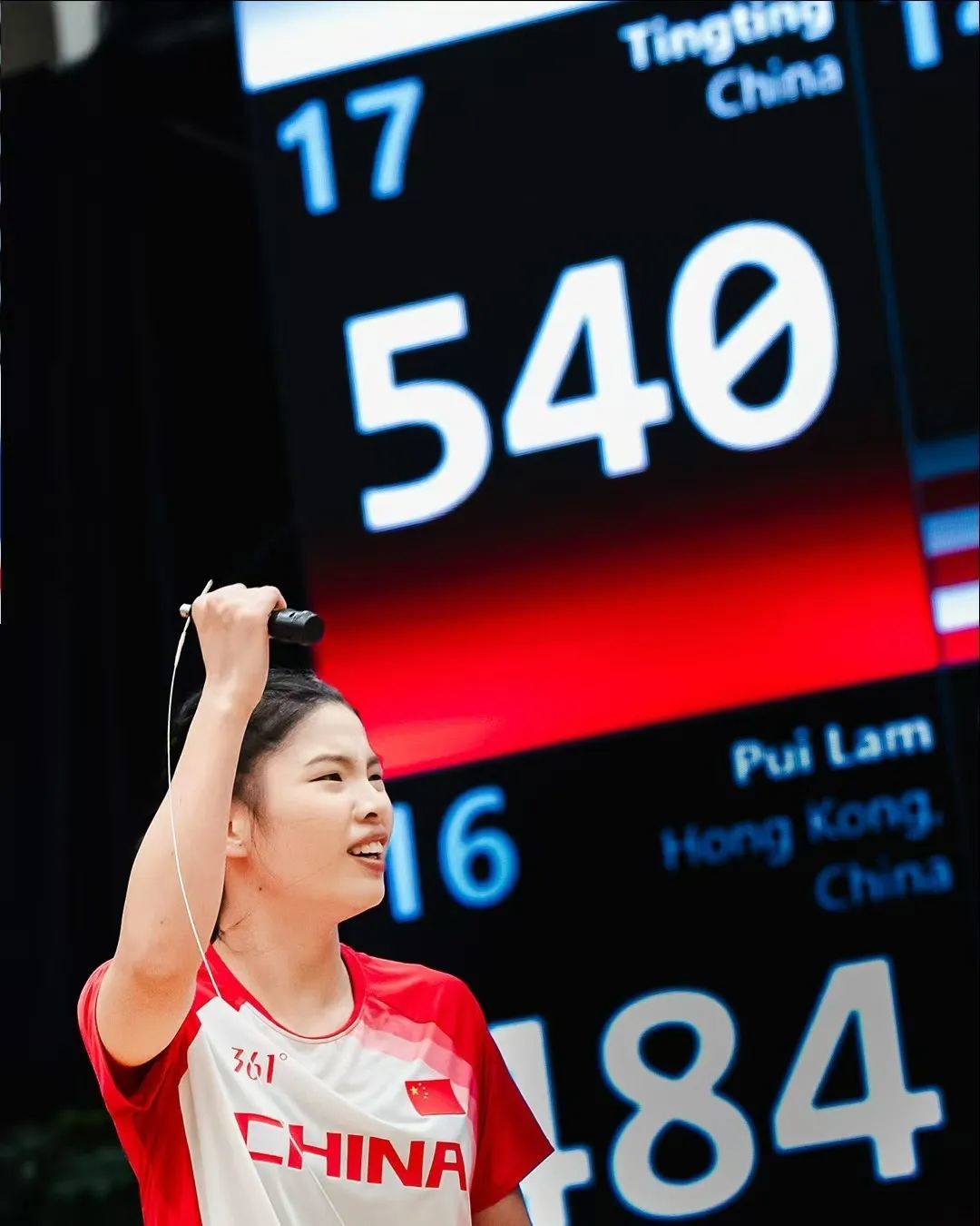 在3分钟单摇跳项目中,杜婷婷预赛便以1088次的优异表现打破世界纪录,决赛更是将纪录提升至1104次,摘得桂冠。在2×30秒双摇接力16+混合组比赛中,她与队友预赛打破世界纪录,决赛成功问鼎;在4×30秒单摇接力16 +混合组和车轮跳16+混合组比赛中,杜婷婷同样发挥出色,助力团队斩获冠军。此外,在30秒单摇跳项目中,她预赛以220次打破世界纪录,决赛以微弱差距获得亚军。