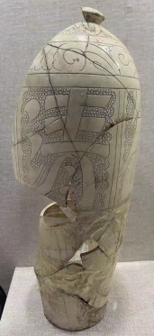 (图五,政和三年白釉篦划水波纹梅瓶,段店窑址采集,现藏鲁山窑段店文化研究所,政和三年为公元1113年)