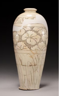 (图四,白釉高体刻划水波纹梅瓶,原文定为金,叶县文集遗址出土)
