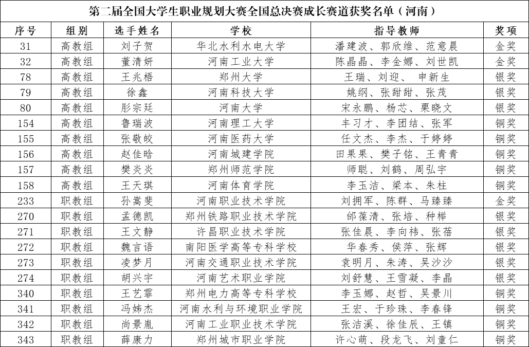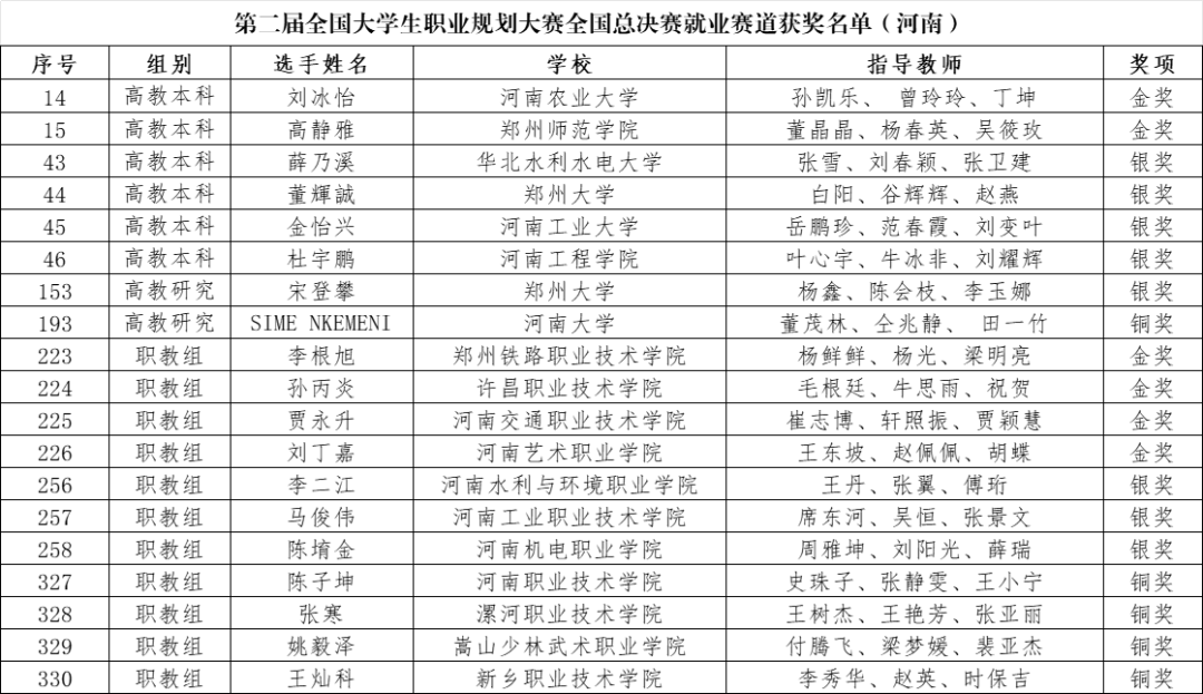8月26日,教育部印发通知公布第二届全国大学生职业规划大赛全国总决赛获奖名单,河南斩获9金、16银、14铜!