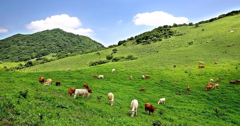 没有过度开发的原生态草场,不需要门票,蓝天白云草甸牛羊,在这里还可以邂逅一场日落的黄昏。