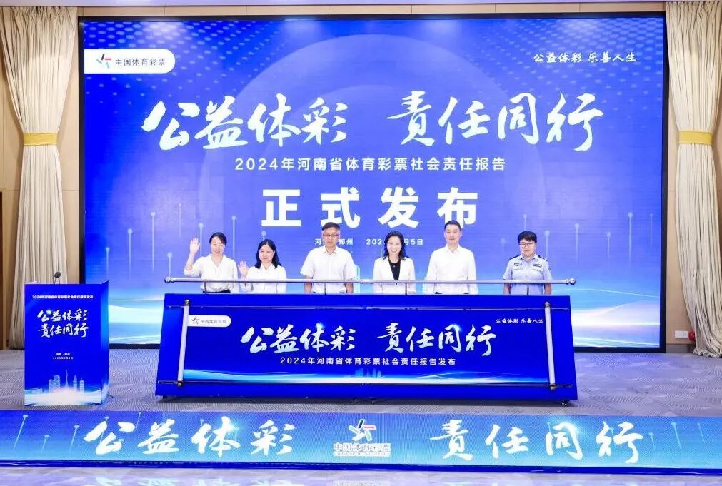 2025年9月5日,公益体彩 责任同行—《河南省体育彩票2024年社会责任报告》发布活动在郑州举行。活动现场,河南省纪委监委驻省体育局纪检监察组副组长王祥国,河南省财政厅综合处副处长刘倩,河南省关心下一代基金会副理事长、秘书长陈孟华,河南省妇联妇女发展部副部长崔学萍,郑州市公安局金水分局反诈大队李敏,河南省体育彩票管理中心主任韩宇共同启动发布装置,宣告《河南省体育彩票2024年社会责任报告》正式发布。