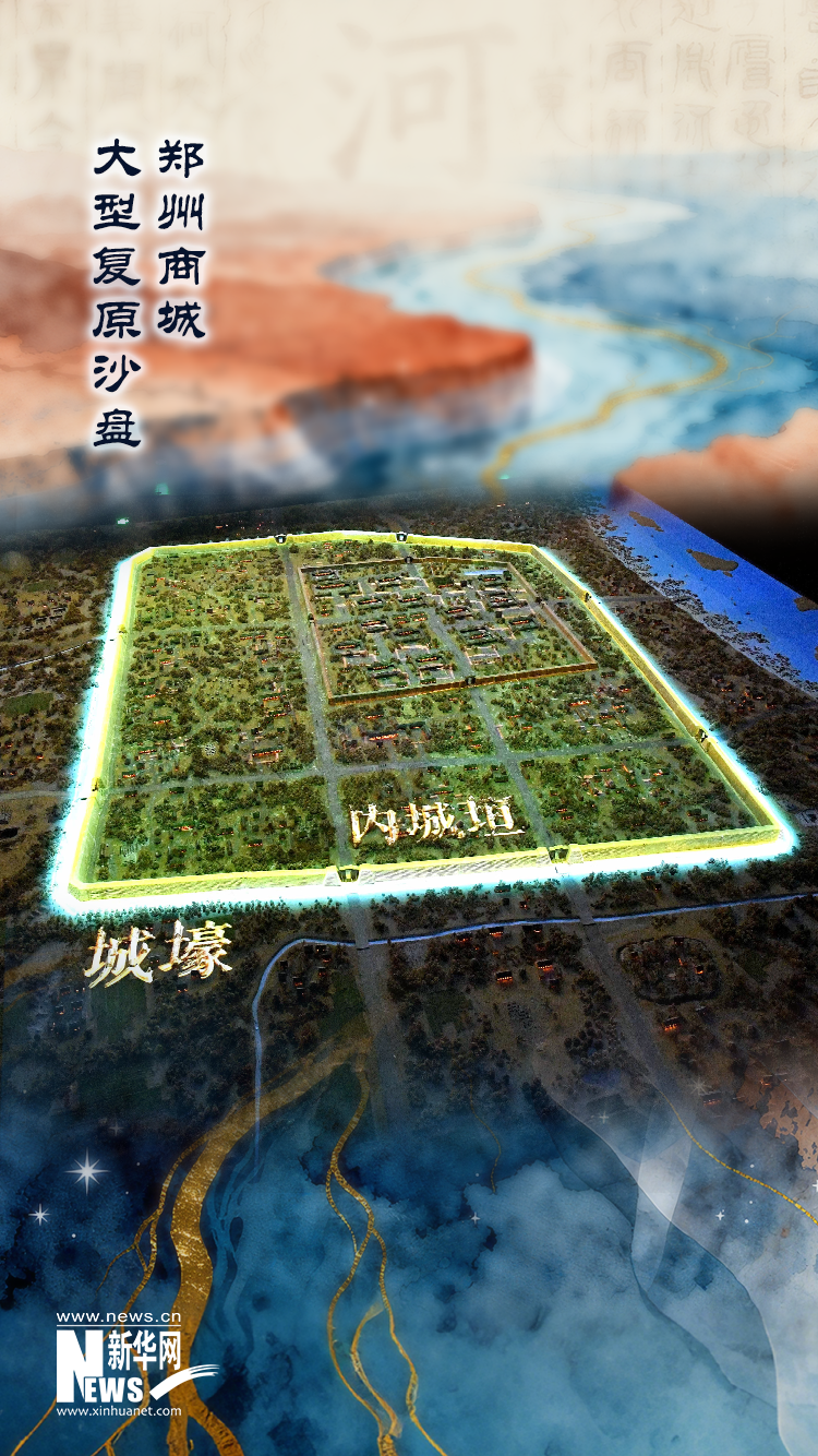 (这是郑州商代都城遗址博物院内的郑州商城大型复原沙盘)