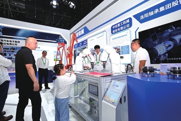 装备制造是一个国家制造业的脊梁。河南展馆内汇集了洛阳轴承、中铁装备、中信重工、卫华集团、河南矿山起重、许继电气、平高电气、中创智领,每一家都是业界响当当的龙头企业。