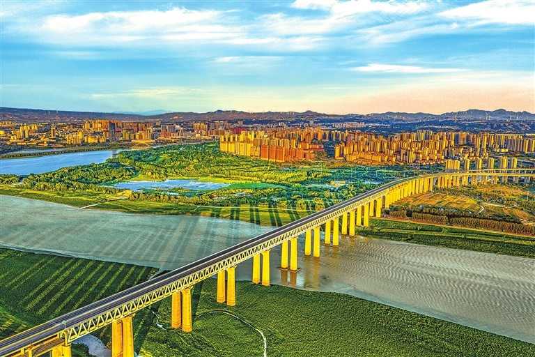 金秋九月,三门峡风光无限。蜿蜒的黄河穿城而过,浩吉铁路三门峡黄河公铁两用桥似巨龙横卧波涛,与岸边的高楼大厦相映成趣,勾勒出一幅壮美秋色长卷。杜杰 摄