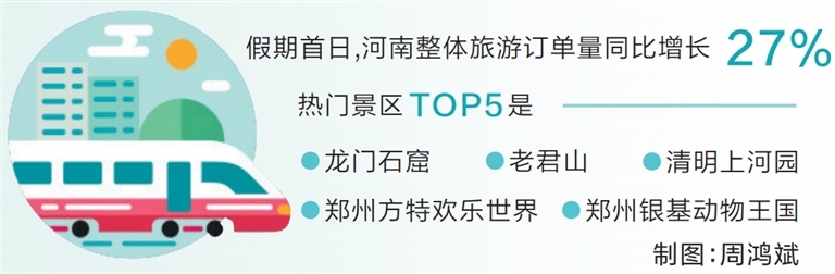 国庆中秋假期伊始,河南旅游市场便呈现出蓬勃活力,“老网红”热度依然。携程数据显示,假期首日河南整体旅游订单量同比增长27%,热门景区TOP5是:龙门石窟、老君山、清明上河园、郑州方特欢乐世界、郑州银基动物王国。