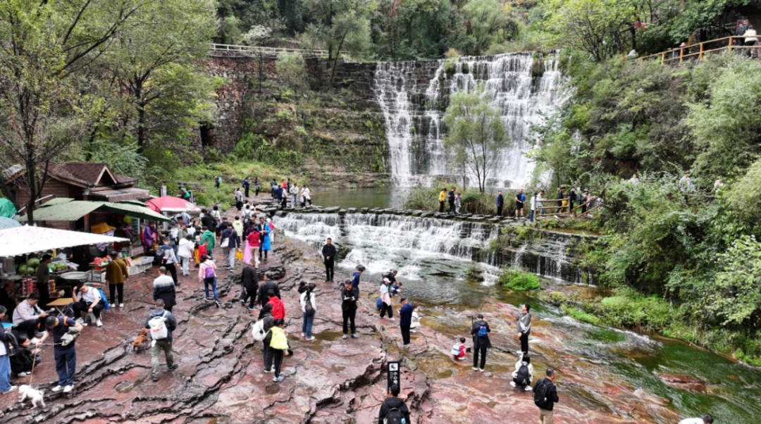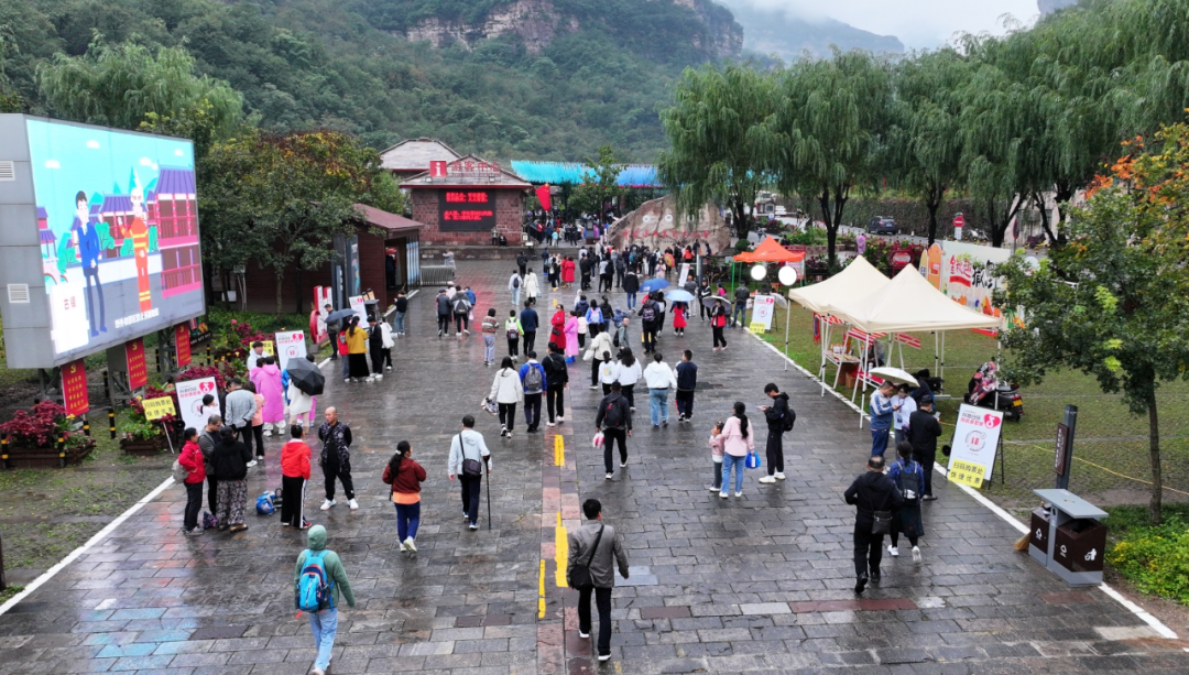 国庆假期第三天,太行大峡谷旅游持续升温,人气旺、氛围足、节目精彩纷呈。景区里的秋日景致已染上浓淡相宜的色彩,还有精心布置的国庆打卡点,不少游客驻足于此,与美景同框,定格假期里的欢乐瞬间。