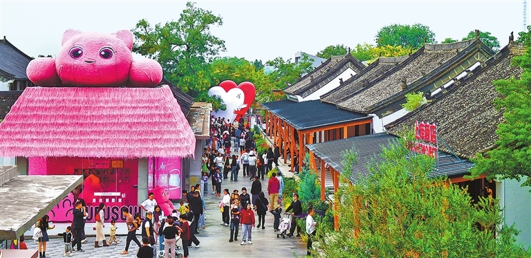 10月7日,位于洛阳市孟津区朝阳镇卫坡村的魏坡新序项目游客络绎不绝。作为中国传统村落、河南省历史文化名村,卫坡村以明清古建筑群为基础,融合历史风貌与现代多元业态,有效激活乡村资源。黄政伟 摄