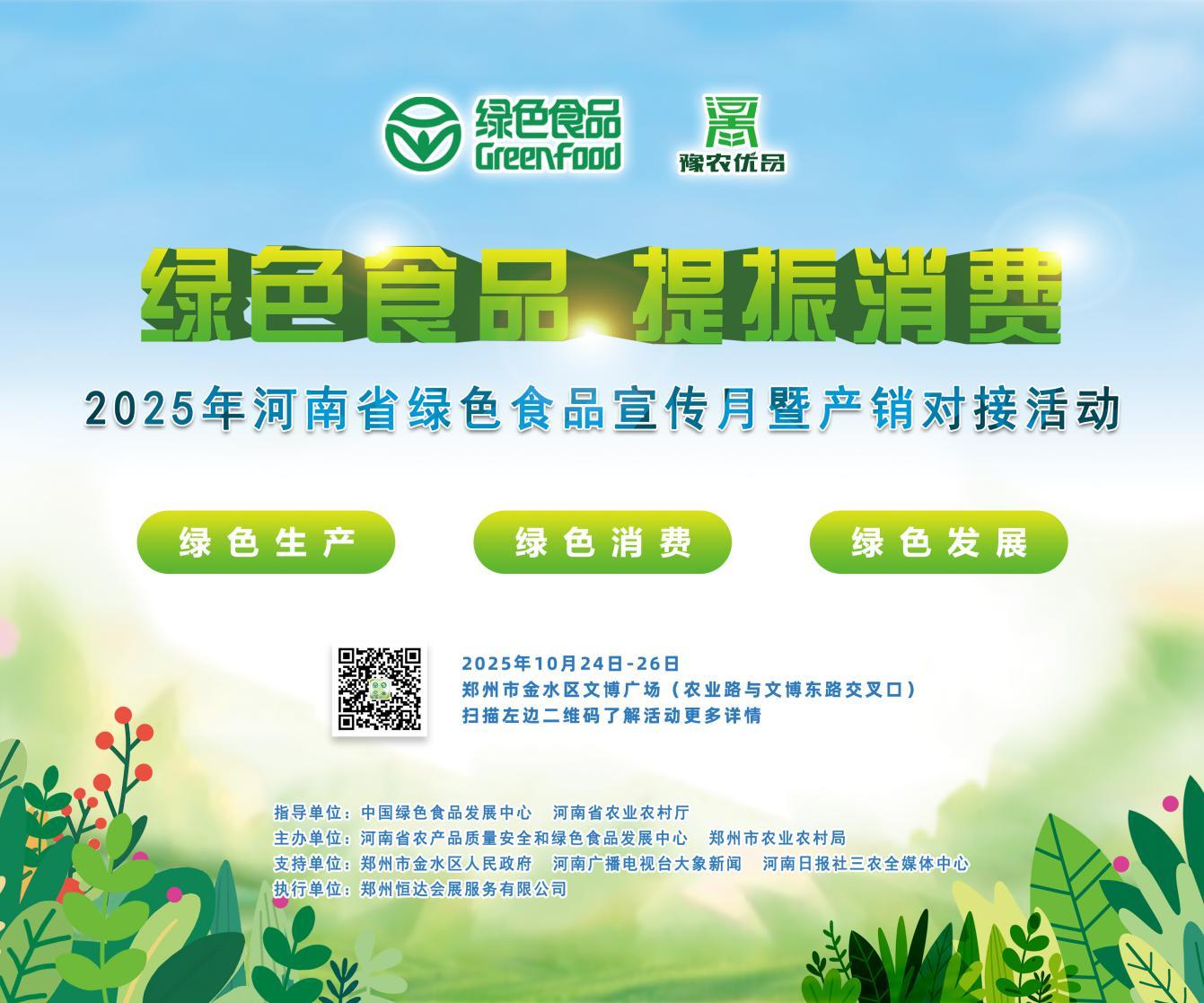 河南省绿色食品宣传月暨产销对接活动,将于2025年10月24至26日在郑州市文博广场举行。