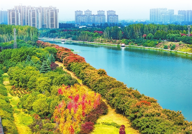 10月14日,颍河禹州市区段秋景如画。两岸树影斑斓,秋水澄澈如镜,勾勒出秋日美景。 吕超峰 摄