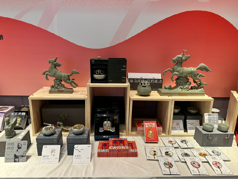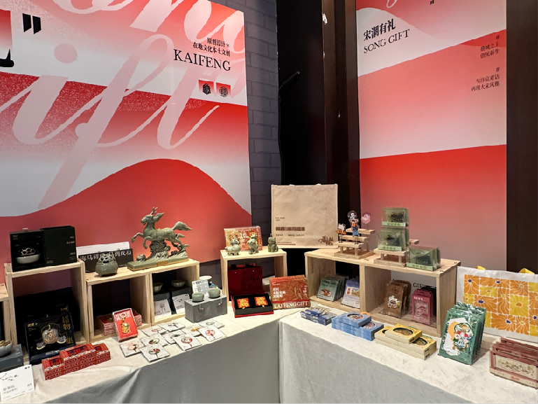 “宋潮有礼”始终坚持以文化为核心、以品质为生命线,结合现代设计语言,打造兼具文化厚度与使用价值的产品。自品牌成立以来,已累计推出 400余款文创产品,其中重点开发宋锦、汴绣、官瓷、木版年画、宋室风筝等非遗艺术家联名计划系列与宋式书画、宋四雅文化审美展现的宋式生活系列,全力打造“铁塔妙音”“官家的猫”“狮狮如意”“汴地神兽”“州桥海马”等宋文化IP;持续研发以开封博物馆馆藏文物为灵感的博物志系列以及各式各样的开封城市景区风物志冰箱贴,产品上线以来深受游客喜爱,屡获“有质感、有故事、很开封”的好评。
