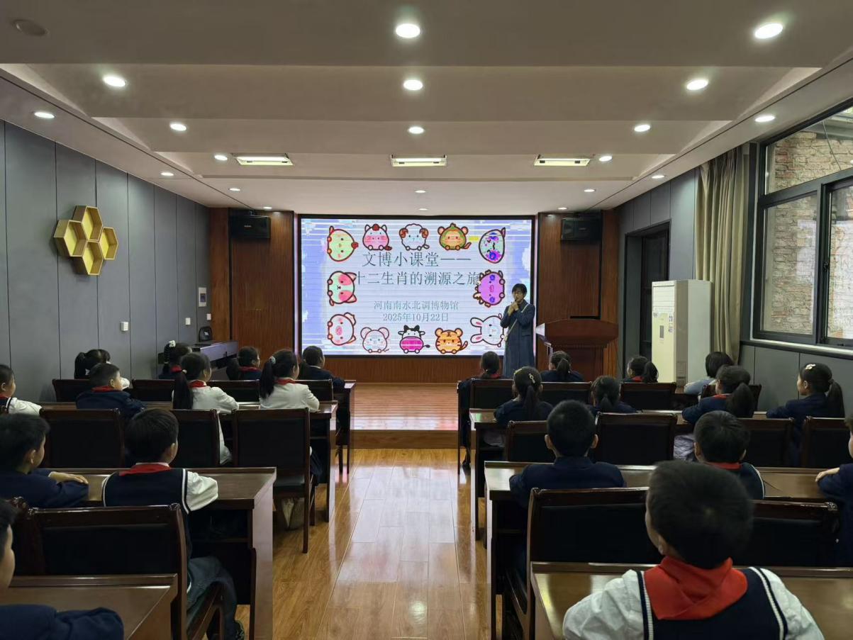 十二生肖又叫属相,是中国与十二地支相配以人出生年份的十二种动物。它不仅是一种纪年方式,更承载了人与自然和谐共生的智慧,体现了中华文化的多样性和创造性。十二生肖这一古老的文化习俗最早见于东汉王充《论衡》的记载,它融合了神话传说、民间信仰和生活智慧,至今与人们的生活紧密相连。2025年10月22日,河南南水北调博物馆的“文博小课堂”走进百花艺术小学,为同学们带来了一场别开生面的“十二生肖溯源之旅”主题社会教育活动。让同学们在体验中感悟生肖文化的魅力,从而实现对中华优秀传统文化的传承与创新。