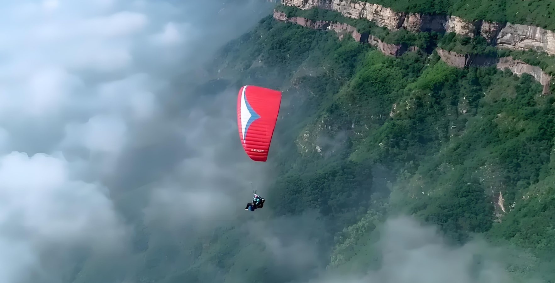 “飞太行”瞰秋红:秋季天朗气清,正是乘滑翔伞“飞越太行山”的好时候。从云端往下望,漫山红叶像铺了一层绚丽的地毯,村落、田野、峡谷在秋光里错落有致,这种“空中看秋”的体验,林州独有。