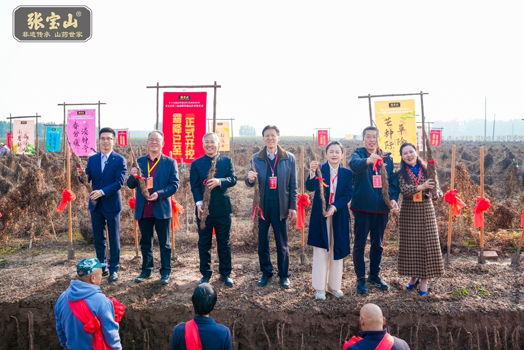 活动当天,在张宝山有机山药种植基地,中国农业大学原校长柯炳生、中国农业电影电视中心总编辑、党委副书记刘爱芳、《中国乡村振兴》杂志社总编辑文炜、焦作市怀药行业协会会长郭铁军、京东物流乡村振兴负责人伞明、张宝山品牌传承人张小卫共同执铲,与农户一道,将带有典型“铁锈红斑”的垆土铁棍山药采挖出土。现场嘉宾们亲手为新鲜采挖的山药系上红绳,为铁棍山药非遗古法种植的传承献上美好祝愿。