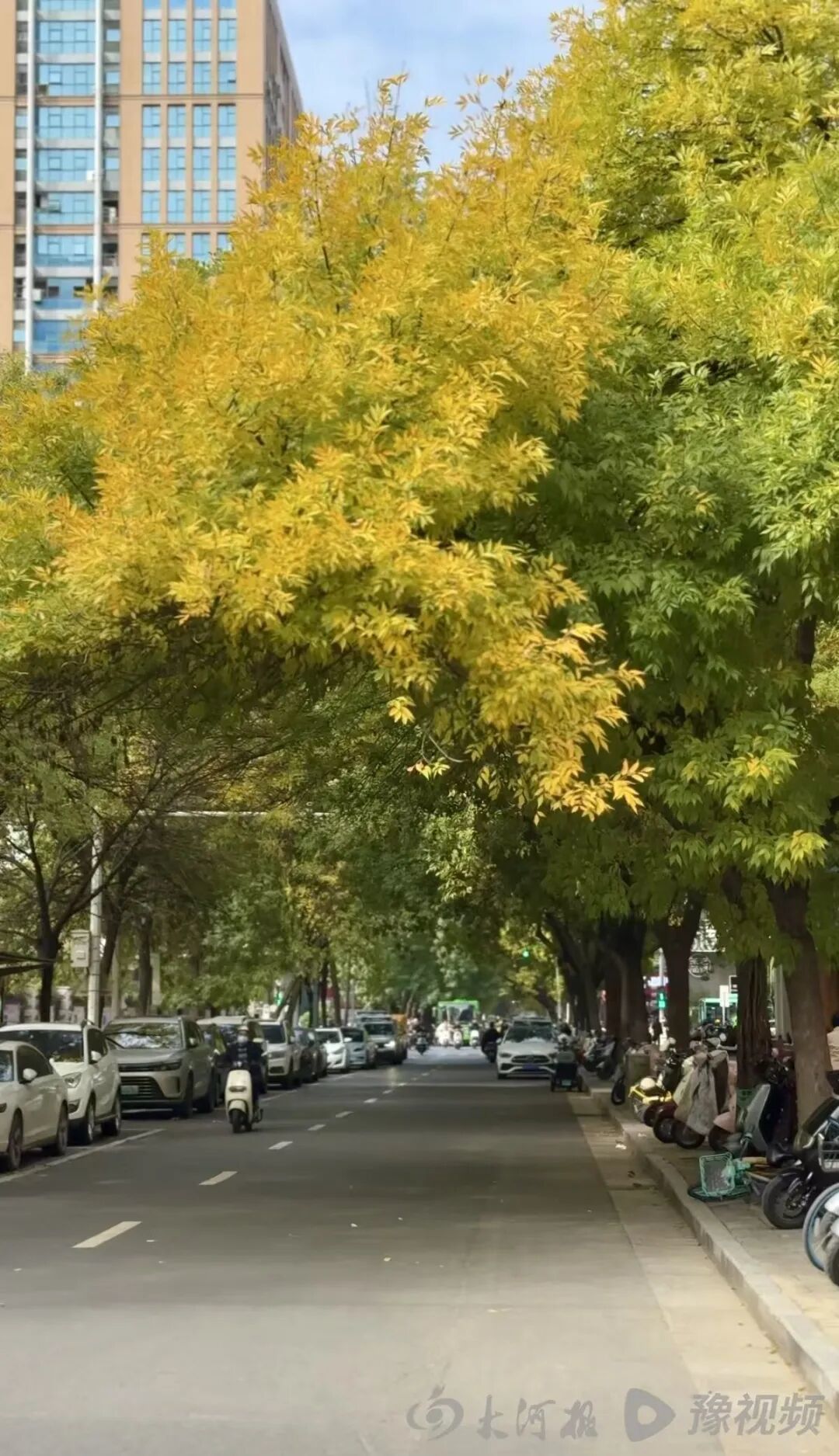 的确,放眼望去,金水路、中原路等主干道上的悬铃木(法桐)主力军,大部分仍是一身绿装,似乎对渐浓的秋意“无动于衷”。不过,秋天的脚步并未停歇,细心的市民或许已经发现,在郑东新区商务外环路等地,一些银杏树的叶片边缘已经悄悄染上了一抹金黄,秋意已在城市的局部悄然显现。
