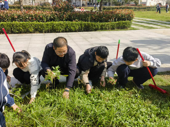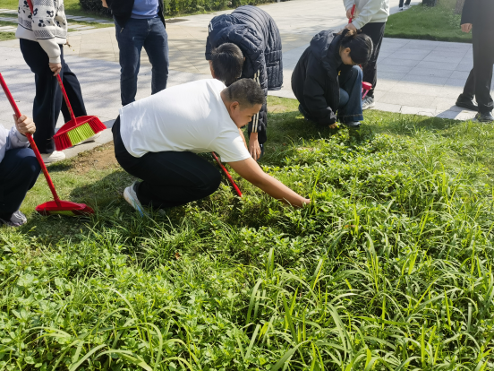在老师们的带动下,同学们热情高涨,积极参与各项劳动任务。大家手执垃圾夹、小铲等工具,分工协作,捡拾垃圾、铲除杂草、清扫落叶,忙碌的身影遍布校园实践基地。师生齐心协力,在劳动中体验付出与收获,不仅使校园环境焕然一新,更在实践中加深了对“劳动创造美”的理解。