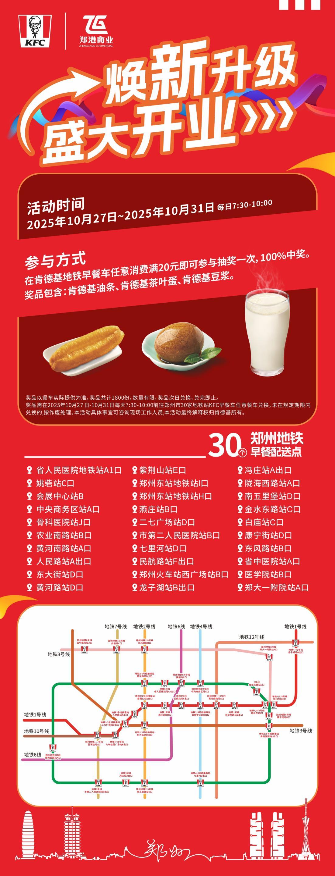 清晨的郑州地铁,上班族步履匆忙。此时,肯德基的暖心美味已悄然就位。2025 年 10 月27日,经过升级调整,肯德基地铁早餐车以全新姿态“元气回归”,为郑州市民带来 “更多站点、更多选择、更好体验” 的早餐新享受。