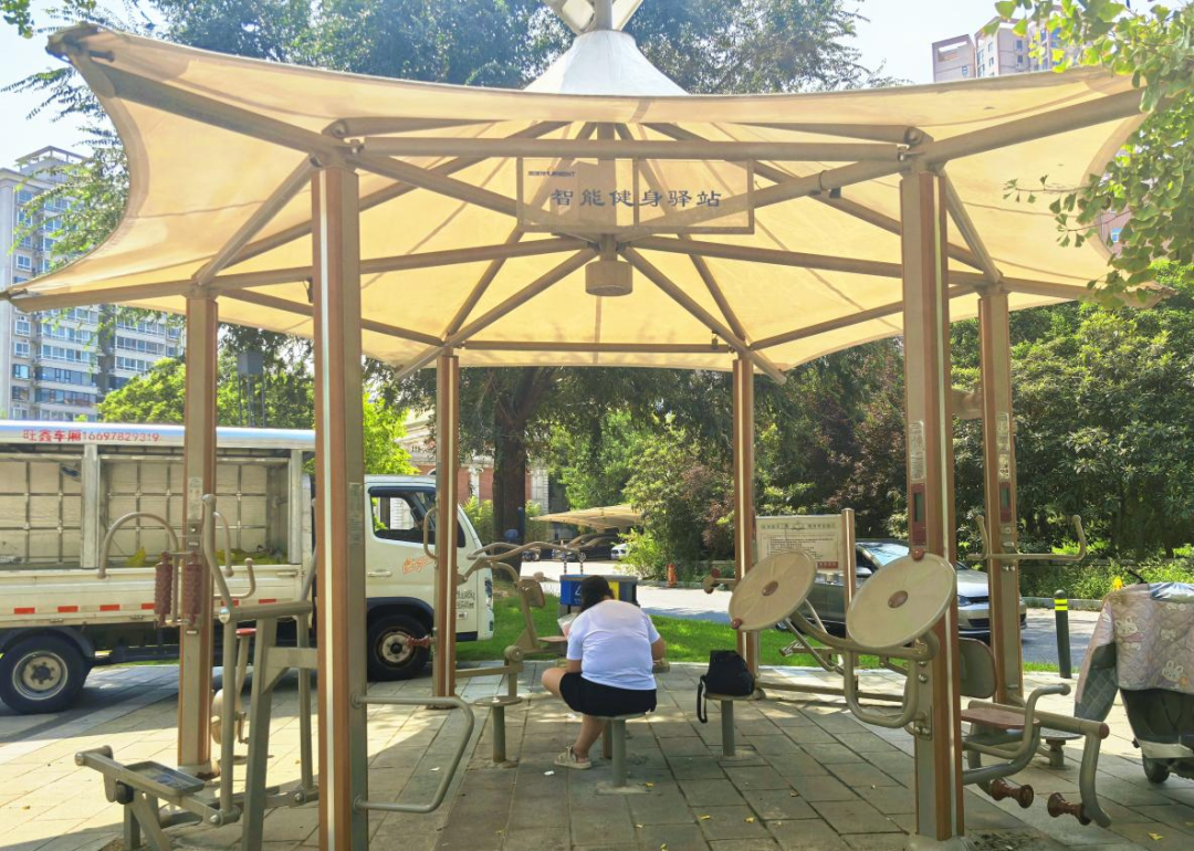 尤其是健身驿站里的二代智能健身设备,市民扫码就能实时查看划船器的速度、推举器的次数、运动时长与卡路里消耗,系统还会根据数据推送个性化健身建议,像把‘微型健身房’搬到了家门口。如今的沁香园日均接待量超千人,成为了金水区市民健身的新阵地。