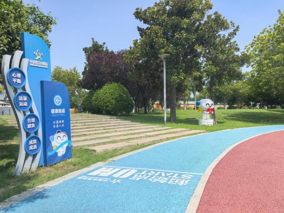 公园内不仅设施完善,还通过健康提示牌、健康教育宣传栏等方式,向市民传递“心理平衡、适量运动、合理膳食、戒烟限酒”的健康理念。草地上设置的中国体育彩票吉祥物乐小星雕塑,也成为了市民拍照打卡的热点,让公益体彩的形象更加深入人心。
